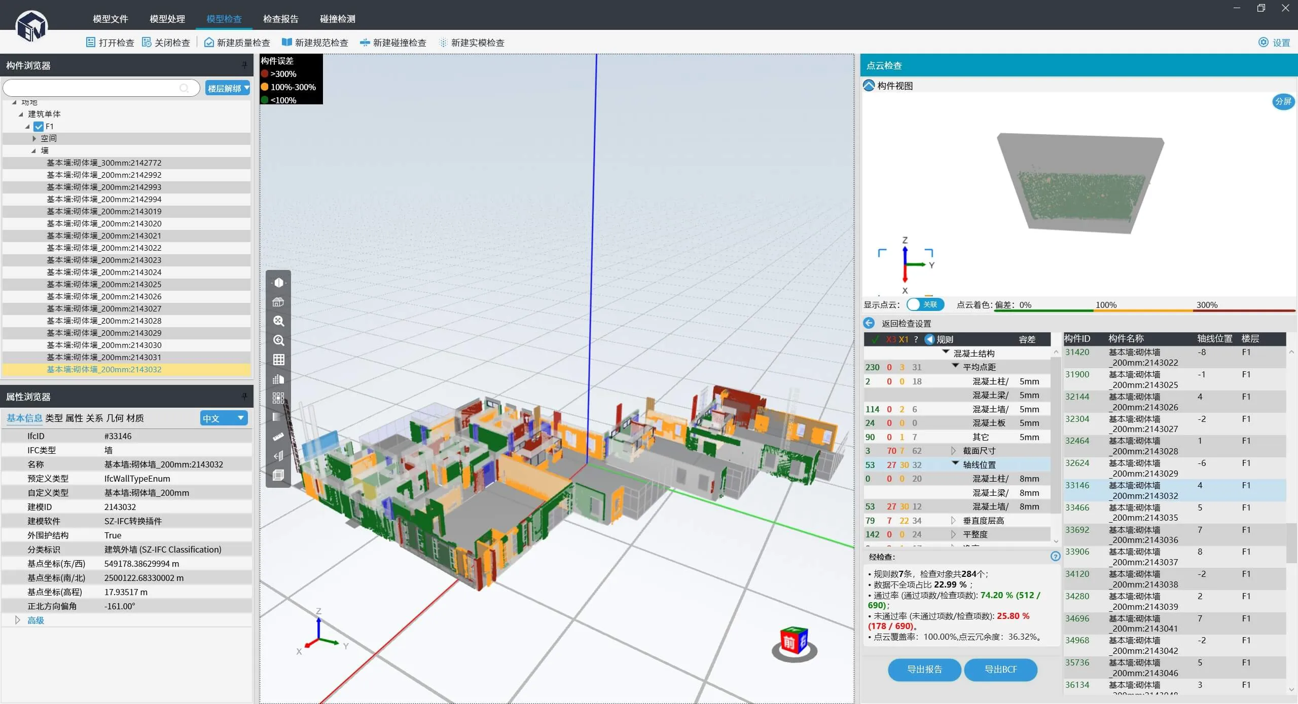 针对模型中的每一个构件进行平均点距、位置、平整度等多维度比对分析